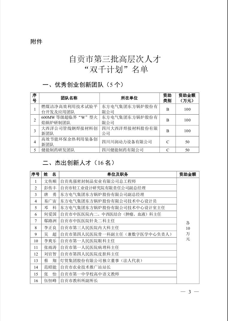本次自貢市高層次人才“千人計(jì)劃-杰出創(chuàng)新人才”命名表彰會(huì)將于4月舉行。