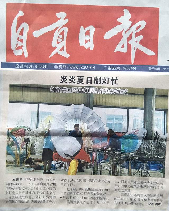 “日輪當午凝不去,萬國如在洪爐中”盛夏的自貢驕陽似火。東方彩燈出口基地生產(chǎn)廠區(qū)內(nèi)一派繁忙,2017全球巡展燈組制作正緊鑼密鼓進行中。參加燈組制作的工人揮汗如雨:燒焊、接線、切割、裱糊......一組組、一個個生輝溢彩、斑斕絢麗的彩燈在勤勞智慧的彩燈藝人手中呈現(xiàn)。