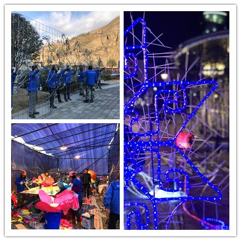 造型、切割、捆扎,機聲轟鳴,焊華飛濺,東方彩燈追夢人櫛風沐雨,任勞任怨,勤勞靈動的雙手從一個冬天,伸向另一個冬天,只為東方彩燈明媚汶川的春天?!洞髳蹮o疆》、《鳳凰涅槃》、《姜維城》、《大禹治水》、《格?;ㄩ_》、《康養(yǎng)汶川》等富含汶川民族文化和歷史底蘊特色的燈組已顯雛形。2018年新春,汶川將以半城青山半城燈的恢宏氣勢和璀璨絢爛向祖國和人民展示災(zāi)后重建十周年的瑰麗畫卷。