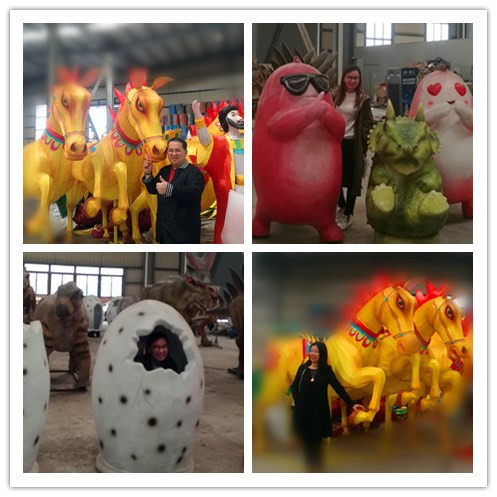 隨后考察團一行參觀了東方彩燈出口基地,并紛紛與彩燈、恐龍合影,喜愛之情溢于言表。