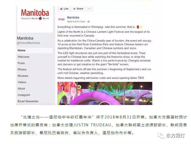 為推進(jìn)中國(guó)傳統(tǒng)彩燈文化的國(guó)際傳播能力,講好中國(guó)故事,展現(xiàn)真實(shí)、立體、全面的中國(guó)。自貢燈貿(mào)集團(tuán)股份有限公司“東方彩燈.點(diǎn)亮世界”全球巡展項(xiàng)目之--2018加拿大溫尼伯、溫哥華;美國(guó)華盛頓、圖森、菲尼克斯燈展已開啟大幕。近日,四川省文化產(chǎn)業(yè)商會(huì)對(duì)我公司2018北美系列外展進(jìn)行了專題報(bào)道。