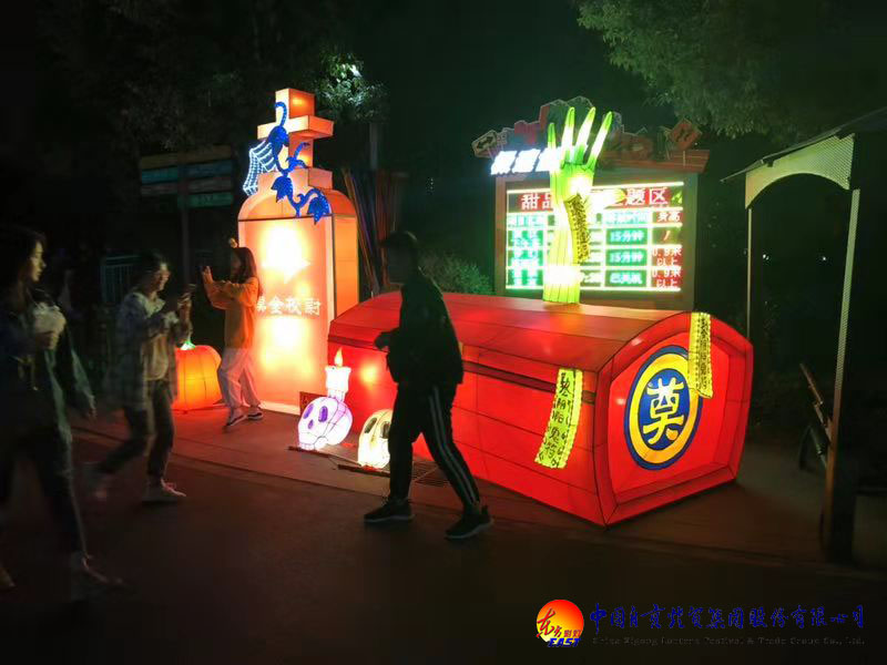 東方彩燈攜手武漢歡樂谷10月12日點(diǎn)亮萬圣節(jié)之夜,精心設(shè)計制作的14組“萬圣節(jié)”燈組驚艷亮相,各種造型鬼魅的燈組引得游客大為驚呼,使得大家躍躍欲試全新的七大鬼屋,勇敢的心油然而生,驚泣的淚隨處可見,過關(guān)的笑精彩無比。