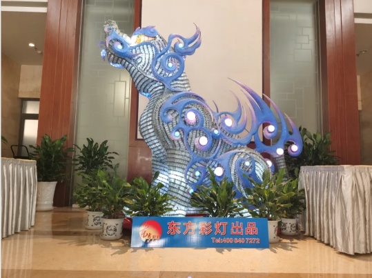 為彰顯自貢彩燈文化名片,市政府有關(guān)部門精選自貢燈貿(mào)集團股份有限公司自有品牌“東方彩燈”出品的兩組具有傳統(tǒng)彩燈藝術(shù)特色燈組—“瑞鶴”、“諦聽”呈放接待現(xiàn)場。