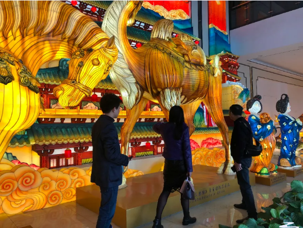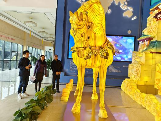 調研組一行參觀了東方彩燈(出口)基地,觀摩了燈貿集團將自貢彩燈與唐三彩兩種非遺技藝的全新融合的“唐風華韻”展品。集團執(zhí)行總裁陶建軍向調研組一行介紹了燈貿集團發(fā)展狀況,以及公司全新彩燈產品。公司為促進彩燈產業(yè)的創(chuàng)新性轉化和創(chuàng)造性發(fā)展,推出了文化+創(chuàng)意+科技全新彩燈產品,產品深度挖掘文化底蘊動線,變被動式觀燈為主動式沉浸、行浸觀燈,燈展的供給創(chuàng)新能力和消費場景獲客能力得到了較大的提升。